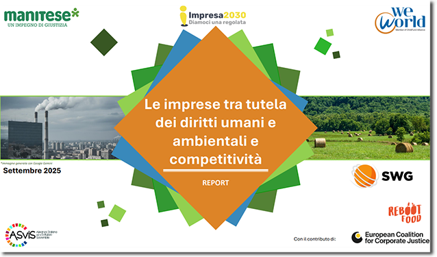 Interessanti sono anche i risultati del sondaggio sulla popolazione italiana sul ruolo delle imprese per la tutela dei diritti umani e ambientali. L’85% dei rispondenti ritiene che le grandi imprese europee e quelle di altri paesi che esportano nel mercato europeo debbano essere obbligate per legge a prevenire i danni causati dalle loro attività a persone, ambiente e clima, anche se questo comporta per loro dei costi in più. L’84% chiede che le grandi aziende siano responsabili dei danni causati dai loro prodotti o servizi lungo tutta la catena del valore e il 79% che le grandi aziende siano obbligate a fare piani per ridurre le emissioni di anidride carbonica. Inoltre, solo un terzo pensa che i governi facciano abbastanza per limitare l’impatto negativo delle grandi aziende sui diritti umani e clima, mentre tre italiani su quattro affermano che non può esserci competitività senza tutela dei diritti umani, dell’ambiente e senza contrasto al cambiamento climatico.