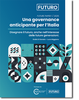 Per affrontare queste sfide e guardare ai prossimi anni, l’ASviS ha presentato il Future Paper "Una governance anticipante per l’Italia. Disegnare il futuro anche nell’interesse delle future generazioni. Il documento, ispirato dalla riforma dell’articolo 9 della Costituzione italiana che ha introdotto, tra i principi fondamentali, la tutela dell’ambiente anche nell’interesse delle generazioni future, propone un nuovo approccio capace di valutare oggi gli impatti di leggi e politiche di domani, così da dotare il Paese degli strumenti necessari a governare le grandi trasformazioni del nostro tempo, come l’intelligenza artificiale, la crisi climatica, la transizione demografica.