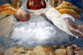 "Fino a oggi - osserva la Frugoni - il primo pittore che pensò di trattare le nuvole era ritenuto Andrea Mantegna che nel suo San Sebastiano, del 1460, mostrò sullo sfondo del cielo un cavaliere che emerge da una nuvola. Ora, questo primato non è più tale". Sul perché, invece, Giotto abbia dipinto il demone nella nuvola, la Frugoni ricorda che "nel Medioevo si credeva che anche nel cielo abitassero i demoni che ostacolavano la salita delle anime". L'articolo della Frugoni sulla scoperta del demone nell'affresco di Giotto è anticipato dal sito sanfrancesco.org. Di Chiara Frugoni è appena uscito per Einaudi il libro 'Storia di Chiara e Francesco'.