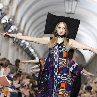 Di grande effetto i caftani con lo scollo quadrato. Grandi cappelli neri indossati da tutte le modelle. Falde larghe ma quadrate, ornate di fantasie a contrasto con gli abiti. Le calzature invece sono in tono e spesso realizzate con gli stessi tessuti.