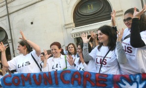 Tra i numerosi rappresentanti della comunità dei sordi scesi in piazza sono intervenuti la presidente dell’Ente nazionale dei sordi, Ida Collu, la poetessa sorda Rosaria Giuranna, e Roberto Petrone, da Firenze, responsabile di “Lis subito”, il gruppo nato spontaneamente in occasione di questo evento. Petrone spiega come in moltissimi Paesi del mondo la lingua dei segni sia stata riconosciuta e che l’Italia è ancora indietro rispetto anche ad altri Paesi europei. “Chiediamo che la Camera approvi immediatamente e definitivamente, senza modifiche, la legge che riconosce la Lis passata al Senato, per promozione della piena partecipazione delle persone sorde alla vita collettiva”, dice Petrone. “L’Onu e il Parlamento europeo l’hanno ufficialmente riconosciuta”. La voce è dell’interprete, Daniela Palumbo dell’Anios.